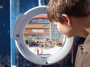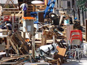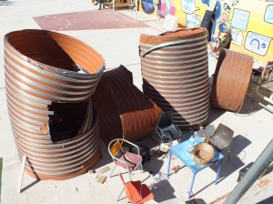 Kyril m’a arrachée à ce folklore sans se douter que la place de la Latina m’offrirait, pauvre Kyril, une nouvelle occasion de retarder notre pause déjeuner. Là, c’était les jeunes du quartier qui avaient rassemblé tout un bric-à-brac pour créer un monde utopique où l’on chante les vieilles